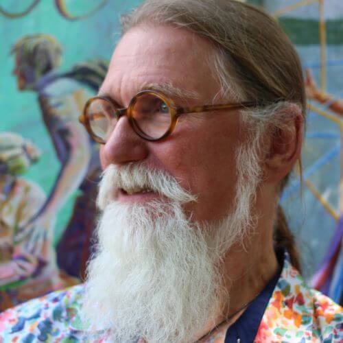 Karsten Auerbach arbejder blandt andet med billedkunst-forløb for patienter Psykiatrien i Odense. På Kulturtræf 2024 faciliterer han også workshoppen “Kunsten som diagnosefrit rum”