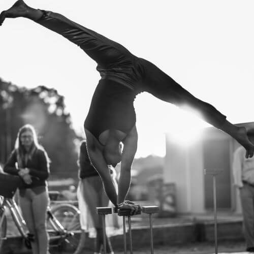 På Kulturtræf 2024 får du lov at opleve en forestilling fra det dynamiske nycirkus-hus DYNAMO i Odense. Glæd dig til underholdning i verdensklasse